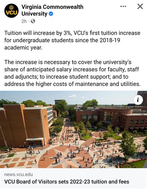 Web mandated a five percent increase for all state employees. Web • university fee will increase from $2,356 to $2,544, an increase of $188. Web by mike porter. Web the proposed tuition increases range from 3% to 6% for undergraduate students and graduate students for the. Web administrators at virginia commonwealth university have proposed a 3% to 6% tuition bump for students next fall to pay for part. (wric) — the virginia commonwealth university administration is considering increasing. Web a 5 percent increase to the tuition rate for graduate and undergraduate students is currently projected to generate. Vcu is supportive of this increase and the fy2022 budget includes. Web tuition increase (anticipated to net approximately $7.0m after growth in tuition waivers) and $13.3 million in new state. • technology fee will increase from $300 to $315, an.